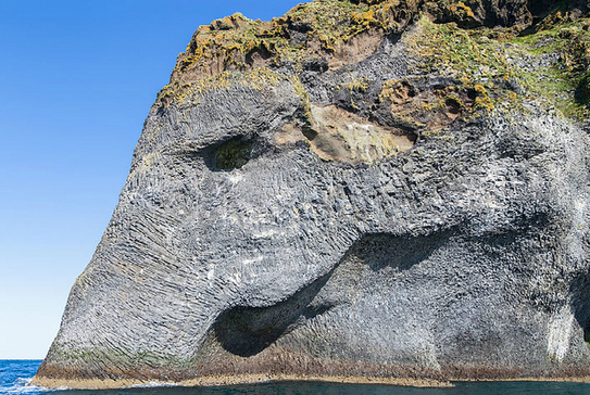 Ca un elefant uriaş care îşi scufundă trompa în mare, stânca în formă de mamifer din Heimaey este o adevărată capodoperă a naturii. De-a lungul secolelor, lava şi vântul au sculptat piatra de bazalt de culoare întunecată, culoare care caracterizează întreaga insulă de origine vulcanică, până când i-a dat forma unui elefant uriaş sau mamut. Roca, situată în partea de sud a insulei, a luat forma unui elefant uriaş care a venit în acest loc pentru a bea apă, sau care iese din apă, după o scufundare seculară.