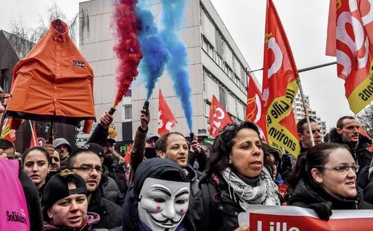Profesori, mecanici de tren şi controlori de trafic aerian din întreaga ţară au plecat joi de la locurile de muncă, perturbând transporturile şi serviciile publice. Aceasta a fost o manifestare a furiei publice faţă de planurile de reformă ale preşedintelui Emmanuel Macron.