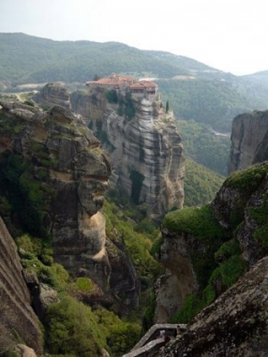 In timp ce eram captivata de incaltamintea barbateasca traditionala, cu ciucuri, a grecilor si de fustele de dama plisate si perfect apretate expuse in vitrinele magazinelor, am auzit exclamatii in jurul meu. Ridic capul, si un decor care iti taie respiratia mi se infatiseaza privirii - stancile de piatra aflate dincolo de orasul Kalambaka, cunoscute in toata lumea sub numele de "Meteore”.