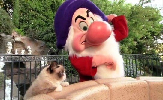 În clipul de mai sus Grumpy Cat îşi descoperă latura sa Disney şi cum era de aşteptat, nimeni altul decât piticul morocănos din Albă ca Zăpada şi Cei 7 Pitici au însoţit-o în aventura ei. Finalul clipului este epic!