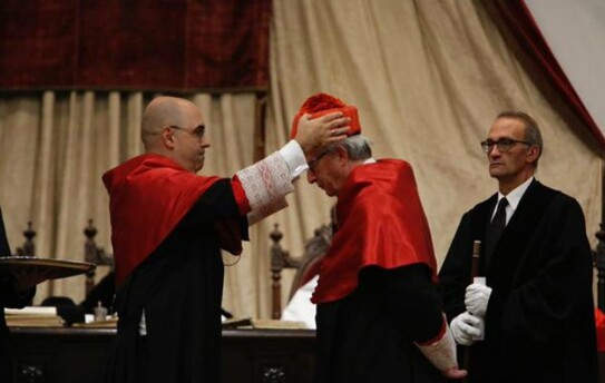 Confuzie în sală în timpul festivităţii de decernare a prestigiosului titlu preşedintelui Comisiei Europene, Jean-Claude Juncker. Ceremonia a trebuit să se oprească pentru scurt timp până când serviciile de securitate au reuşit să scoată din sala Paraninfo, unde a avut loc evenimentul, un grup de studenţi (video).