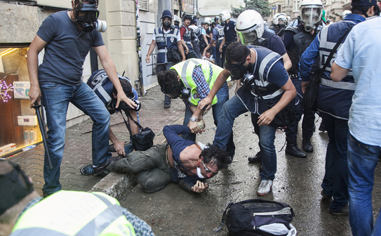 Jurnaliştii sunt printre cei mai vizaţi de poliţie, mai mulţi reporteri fiind bătuţi sau arestaţi. Pe site-ul Reporteri Fără Frontiere din Europa s-au răspândit, printre alte imagini, cele cu arestarea jurnalistului turc Gokhan Bicic, care a fost oprit şi doborât la pământ de către patru ofiţeri de poliţie. De la ferestrele caselor oamenii au strigat la poliţie să-l lase în pace, apoi au început să arunce cu tot felul de obiecte, inclusiv un scaun de plastic, împotriva agenţilor. Dar reporterul a fost luat cu forţa.