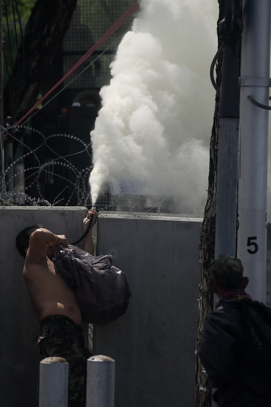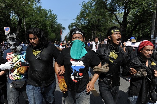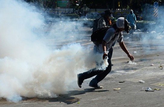 Poliţia a tras de trei ori cu gaze lacrimogene împotriva protestatarilor aflaţi în apropierea clădirii guvernului. Manifestanţii anti - guvernamentali, mai mult de 1.000 de persoane, vroiau, de fapt, să intre în birourile prim-ministrului Yingluck şi în alte clădiri publice. Forţele de ordine au încercat să liniştească mulţimea, strigând prin megafoane: ”Noi toţi suntem fraţi şi surori, vă rugăm nu încercaţi să intraţi!''