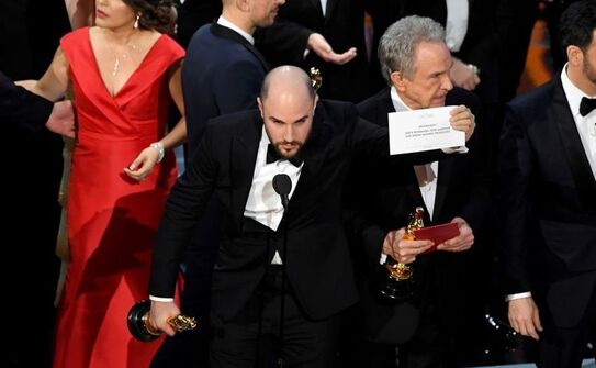În cadrul unei gafe de proporţii pentru rigorile de organizare a unei gale Oscar, prezentatorii premiului la categoria Cel mai bun film, Warren Beatty şi Faye Dunaway, au anunţat drept câştigător filmul "La La Land" în locul producţiei "Moonlight". Confuzia a fost generalizată, membrii echipei "La La Land" urcând pe scenă pentru a sărbători cel mai important premiu al serii. Două minute mai târziu, Jordan Horowitz (cel care a compus muzica în La La Land), a uimit pe toată lumea când a spus că s-a făcut o greşeală şi că nu era o glumă. El ţinea în mână un cartonaş pe care scria că ”Moonlight” este câştigătorul.