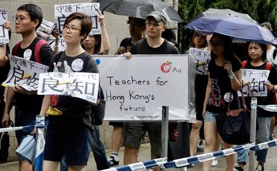 Mii de profesori, conduşi de liderii sindicatului lor din Hong Kong, au mărşăluit prin ploaie torenţială pentru a-i susţine sâmbătă pe manifestanţii pro-democraţie, potrivit Deutsche Welle.