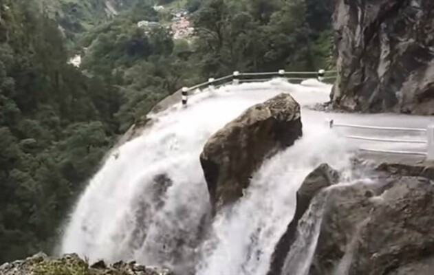 Imaginile şocante ale unui drum de munte din Nepal, inundat de mai multe cascade (video)