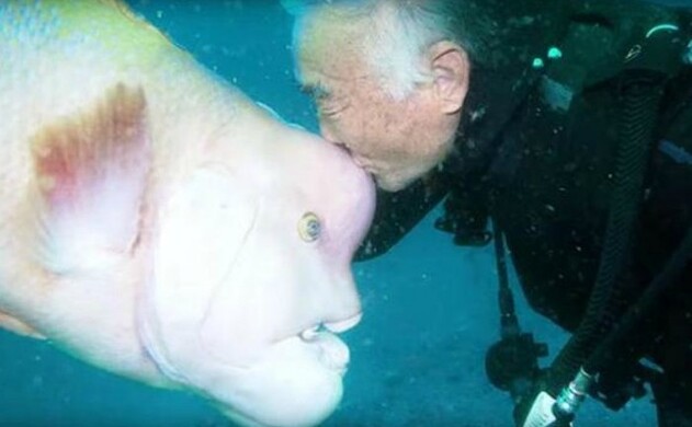 Impresionant: un scafandru japonez şi un peşte ciudat sunt prieteni de 30 de ani (video)
