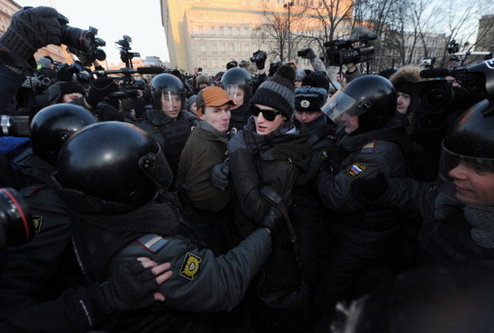 Liderii opoziţiei Serghei Udalţsov, Aleksei Navalny, Ilya Yashin şi Ksenia Sobchak au fost arestaţi şi apoi eliberaţi fără a fi acuzaţi. Potrivit postului Radio Europa Liberă, protestatarii au stat la temperaturi foarte scăzute înainte să fie arestaţi de poliţia rusă, pentru că deţineau sloganuri sau semne politice şi pentru că scandau sloganuri împotriva lui Putin.