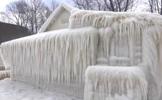 Un val de ninsori, frig şi vânt rece a acoperit, săptămâna trecută, o casă din nordul statului New York, Statele Unite ale Americii, complet cu gheaţă.