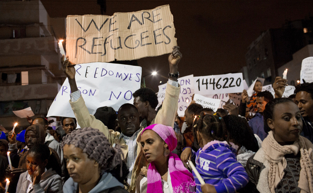 Manifestanţii au protestat împotriva refuzului autorităţilor israeliene de a le acorda statutul de refugiat şi au solicitat plasarea în centre de detenţie.