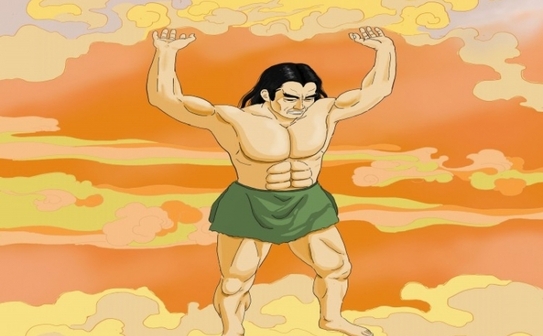 Pangu era singurul om intre cer si pamant. Starile lui emotionale puteau schimba universul. Cand era multumit cerul era senin si cand era furios vremea devenea inchisa. Strigatul lui aducea ploaia si suspinul - vant puternic. Cand clipea - cerul fulgera si tunetul vuia zgomotos.