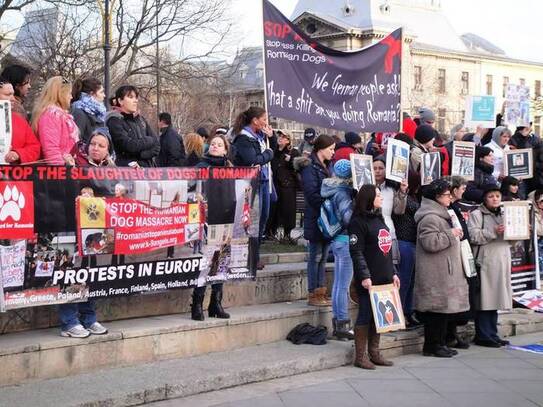 Sâmbătă, 21 februarie, iubitorii de animale au organizat un protest în Piaţa Universităţii din Bucureşti, despre care cele câteva zeci de persoane - venite din Bucureşti şi din alte oraşe ale României dar şi din Germania şi Marea Britanie - au afirmat că este primul protest din acest an dintr-o serie de proteste ce va continua până când autorităţile vor răspunde cerinţelor lor de a rezolva problema câinilor fără stăpân într-o manieră civilizată şi viabilă. Se consideră că sterilizarea, microciparea şi înregistrarea câinilor precum pedepsirea abandonului şi educaţia populaţiei sunt singurele soluţii viabile.