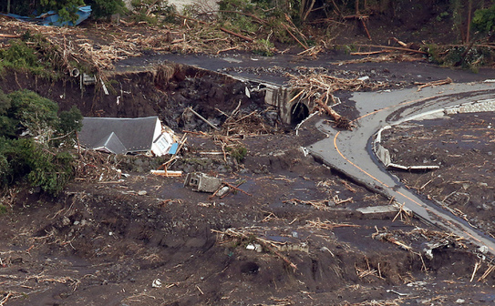 Un versant de munte din regiunea Motomachi-kandachi s-a prăbuşit şi a distrus complet mai mult de 30 de case, iar alte patru din vecinătate au fost aproape dărâmate.