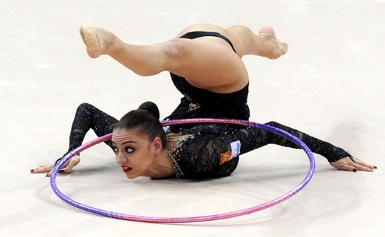 Kanaeva doar la panglică nu a obţinut cea mai bună notă (devansată de Dmitrieva). Kanaeva a fost prima gimnastă din istoria specialităţii care a luat şase medalii de aur la aceeaşi ediţie a Mondialelor, în 2009, la Mie (Japonia), la individual, cele patru obiecte şi pe echipe. Ea a reeditat performanţa anul trecut, la Montpellier.