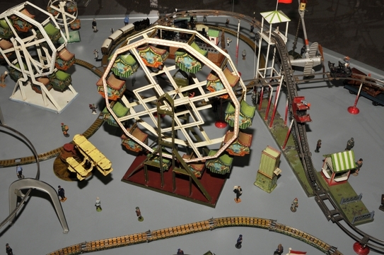 Elementul central al expoziţiei dedicate jucăriilor de colecţie este un parc de distracţii în care cei mici vor avea bucuria să vadă două montagne russe-uri, patru carusele, dar şi alte componente care ascund poveşti deosebite.