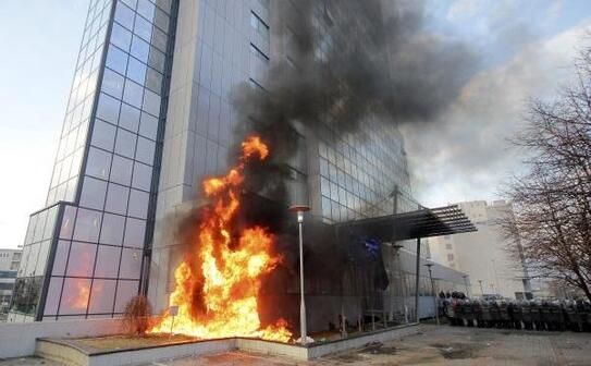 Kosovo: Manifestanţi furioşi dau foc sediului guvernului din Priştina