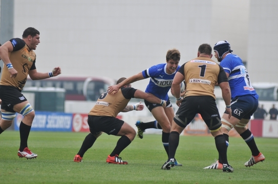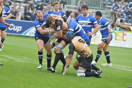 Selecţionata "Lupii Bucureşti", care reprezintă România în Amlin Challenge Cup, a doua competiţie valorică intercluburi din Europa, a fost învinsă cu 40-17 (23-7), pe terenul propriu, stadionul Arcul de Triumf din Bucureşti, de echipa engleză Bath, la meciul de debut în grupele competiţiei. Deşi, în fapt, o selecţionată a campionatului României, cu jucători de la Timişoara, Baia Mare, Steaua, Dinamo, Farul şi CSM Bucureşti, ba chiar şi cu mijlocaşul la deschidere neozeelandez, Michael Wiringi, principalul marcator al băimărenilor în sezonul trecut al SuperLigii, cu 151 puncte, “Lupii” nu au reuşit să ţină piept englezilor decât, cât de cât, în repriza secundă. Din păcate, începutul a fost dezastruos, iar englezii au condus la un moment dat cu 23-0, scor imposibil de recuperat...