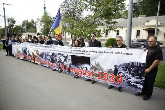 Partidul Liberal (PL) a desfăşurat miercuri seara un flashmob în faţa Ambasadei Federaţiei Ruse din Republica Moldova. Motivul desfăşurării acţiunii de protest a fost „împlinirea a 78 ani de la semnarea odiosului pact Molotov-Ribbentrop din 23 august 1939, prin care Hitler şi Stalin au împărţit sferele de influenţă în Europa, sfârtecând România şi rupând Basarabia de la trupul Ţării.