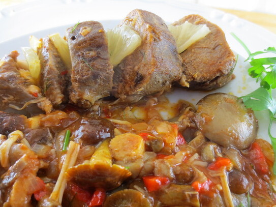 Limbă de porc cu sote de ciuperci - o delicateţe culinară