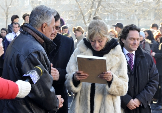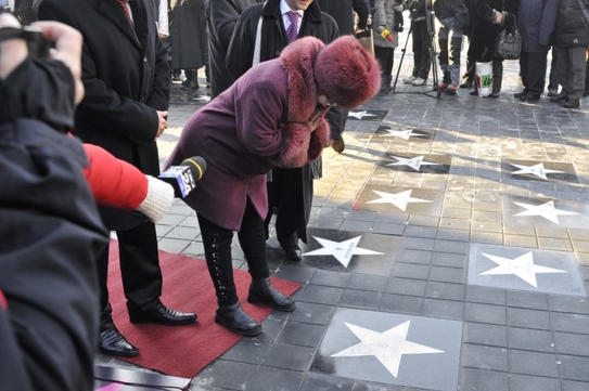Soţia actorului Ion Lucian, Paula Sorescu Lucian, a fost cea care a ajutat la dezvelirea stelei dedicate artistului.