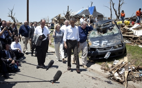 Anterior, Obama a vizitat cele mai grav afectate zone, însoţit de guvernatorul de Missouri, Jay Nixon, şi a discutat cu localnicii.