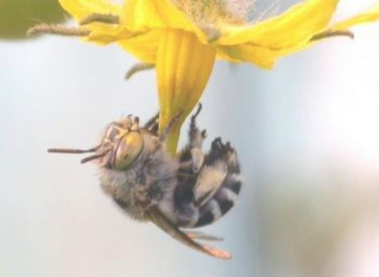 Desi nu produce miere, albina cu dunga albastra este un foarte bun polenizator si este cea mai eficienta pe diverse plante, inclusiv rosii, cartofi, vinete si dovleci.