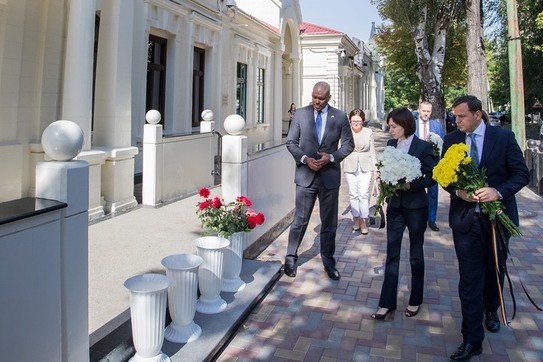 Premierul Maia Sandu şi viceprim-ministrul Andrei Năstase au depus flori, miercuri, la Ambasada Statelor Unite ale Americii, în memoria victimelor din 11 septembrie 2001.