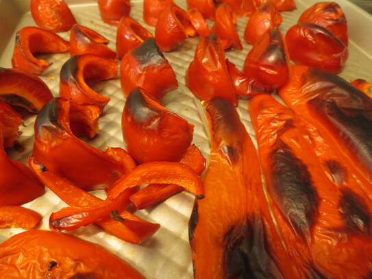 O altă metodă de coacere a gogoşarilor la cuptor, este următoarea: gogoşarii se taie în felii mai mari, se curăţă de cotor şi sâmburi şi se pun tavă la cuptorul încins la 170 C. După 4-5 minute se întorc pe cealaltă parte. Gogoşarii se pătrund destul de bine, iar pieliţa de deasupra se îndepărtează foarte uşor. După ce s-au răcit, gogoşarii copţi se curăţă de pieliţă şi se taie în fâşii subţiri pe lungime.