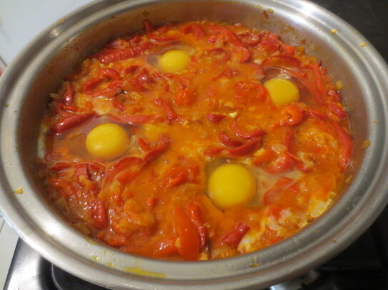 Opţional, dacă doriţi puteţi adăuga ouăle. Pentru fiecare ou se face un cuibuşor mic în care se sparge oul. Cu ajutorul unei furculiţe, se împrăştie o parte din albuş, printre legume. Cratiţa se acoperă cu un capac şi se lasă pe foc cam 5 minute.