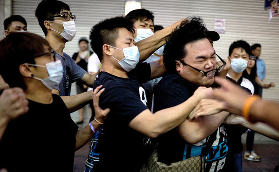 Manifestanţii din Hong Kong atacaţi de bărbaţi mascaţi