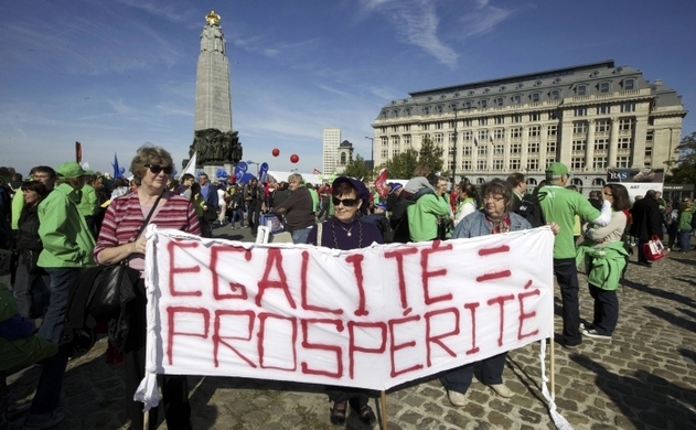 Circa 1.500 de manifestanţi au manifestat duminică în faţa Ministerului Justiţiei din Bruxelles, pentru a protesta faţă de accentuarea inegalităţilor economice în Belgia.