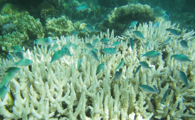 Potrivit unui raport al Internaţional Union for Conservation of Nature (IUCN) , în conformitate cu cele mai recente modele de prognoză, până în 2050 încălzirea oceanului va cauza decolorarea (bleaching) aproape a tuturor recifelor de corali din lume. Acest fenomen se produce atunci când algele care trăiesc în simbioză cu coralii – responsabile, de asemenea, de culorile lor luminoase - îi abandonează în masă, făcându-i să moară de foame.