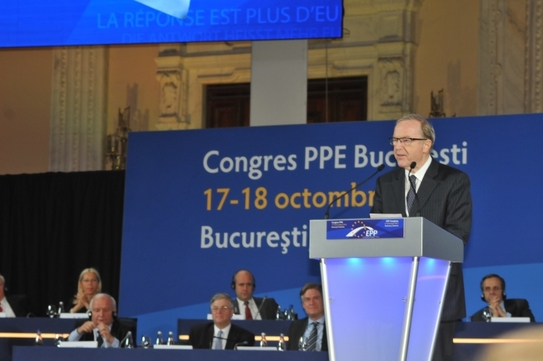 "În orice caz, avem nevoie de disciplină, asta este clar. Disciplină bugetară şi avem nevoie şi de creştere. Asta este clar şi liderii partidelor noastre au spus că avem nevoie de competitivitate, trebuie să găsim posibilităţi de competitivitate şi de inovaţie şi aşa se vor putea crea locuri de muncă. Însă, condiţia este să acceptăm să rezolvăm această criză a datoriilor prin intermediul unei discipline bugetare, prin intermediul unei Uniunii bancare, dar în acelaşi timp să obţinem o nouă competitivitate pentru industria Uniunii Europene. FMI a spus că UE are nevoie urgent să devină o Uniune economică şi politică şi acesta este mesajul principal al congresului nostru. Dar la prima dvs întrebare lucrurile sunt foarte clare şi am discutat ieri şi cu prim - miniştrii noştri avem nevoie de amândouă, avem nevoie de competitivitate - aceasta este condiţia esenţială pentru a crea inovaţii şi pentru a crea locuri de muncă", a susţinut preşedintele PPE.