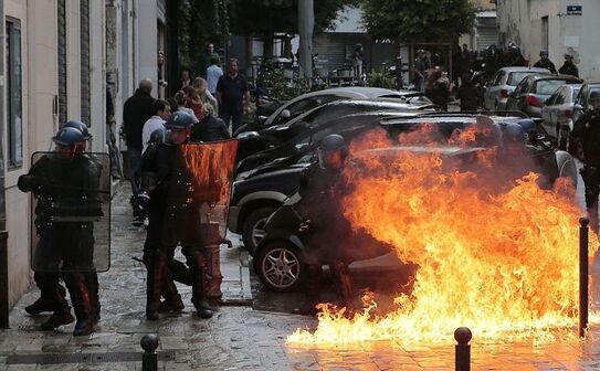 Maşină incendiată în timpul protestelor anti-poliţie din Franţa