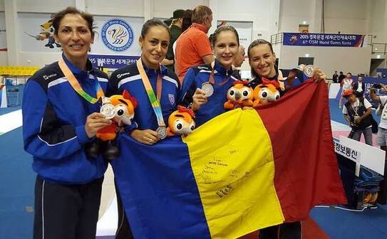 Echipa feminină de spadă a României a reuşit să câştige medalia de argint la Jocurile Mondiale Militare de la Mungyeong (Coreea de Sud), vineri, după ce a pierdut în finală în faţa Rusiei, cu scorul de 36-22.