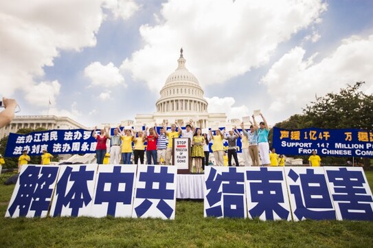 Într-o zi caniculară cu o temperatură de peste 35 de grade, membri ai Congresului, reprezentanţi ai organizaţiilor de drepturile omului şi ai mai multor crezuri s-au strâns pe gazonul din faţa Capitolului şi au vorbit cu tărie cerând încheierea persecuţiei Falun Gong în China. Campania Partidului Comunist Chinez de a elimina această disciplină spirituală a început acum 14 ani, pe 20 iulie 1999.