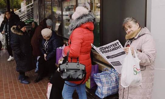 Mai mult, protestatarii au informat că poliţia le-a furat banerul. „Deja al doilea. Poliţia fură. Asta e paradoxal, dar aşa e. Noi am scris o plângere.”
