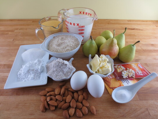 Brioşele cu pere şi migdale făcute din aluat de mălai, servite alături de un pahar cu lapte sau suc, sunt perfecte pentru micul dejun. Aluatul se aseamănă cu cel al plăcintelor ţărăneşti cu mălai, făcute de bunicile noastre, cu deosebirea că în loc de unt se pune ulei, iar migdalele măcinate se înlocuiesc cu făină de mălai.