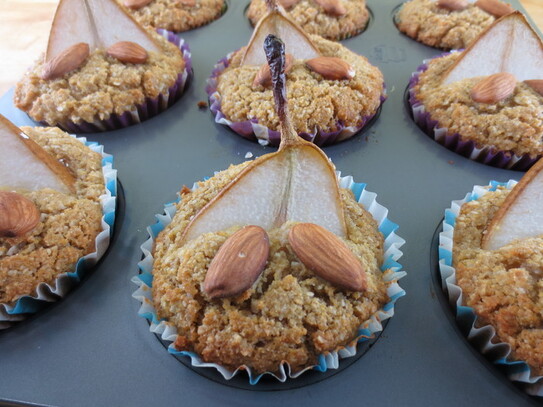 Mic dejun de sfârşit de săptămână: Brioşe de mălai cu pere şi migdale