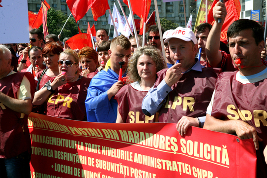 În jur de 4.000 de poştaşi s-au strâns în Piaţa Victoriei pentru a cere demisia directorului general al companiei, pe care îl acuză că prin măsurile de austeritate luate a înrăutăţit condiţiile de muncă ale angajaţilor, fără să îmbunătăţească situaţia financiară a Poştei Române; şi pentru a cere salarii mai mari.