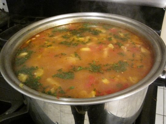 După ce supa începe să clocotească, se micşorează focul, apoi se acoperă oala cu un capac. Se lasă să fiarbă la foc mic cam o oră.