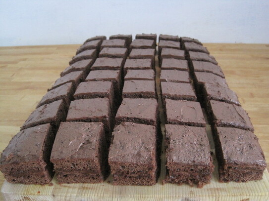 Se obţine o compoziţie omogenă care se toarnă într-o tavă de 33 x 23 x 5 cm, unsa cu grăsime şi tapetată bine cu făină. Blatul se pune la cuptor (încins în prealabil la 180 C), şi se coace circa 30 de minute.