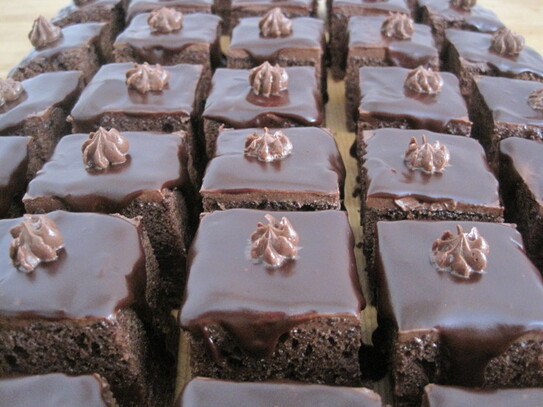 Pentru prepararea glazurii, se topeşte pe aburi ciocolată de menaj mărunţita în bucăţele, se adaugă untul. După ce ciocolata s-a topit, se ia vasul de pe foc, se adaugă câteva linguri de frişcă lichidă, amestecându-se bine, până când frişca se încorporează. Glazura se întinde generos pe fiecare bucată de prăjitură. După ce glazura s-a răcit, se ornează cu moţuri din frişcă sau din crema rămasă.