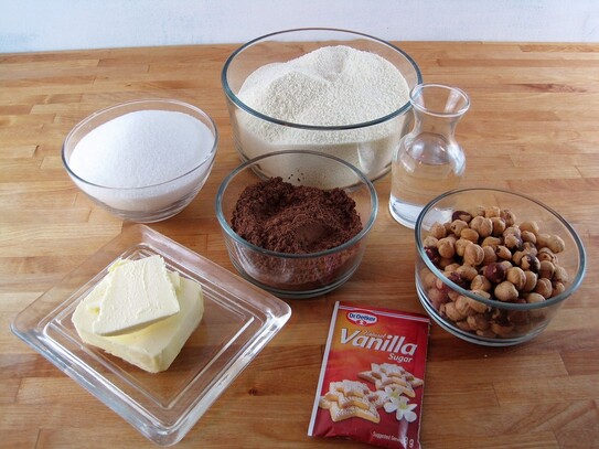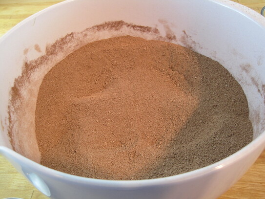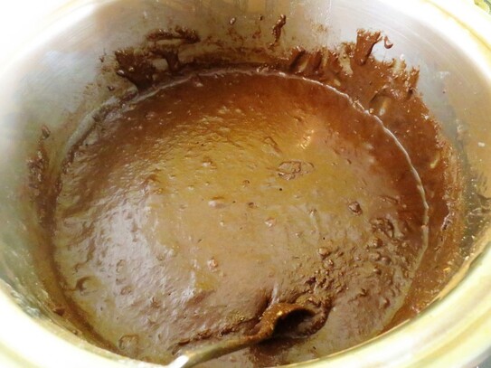 În timp ce siropul fierbe, cacaoa se cerne într-un castron, după care se amestecă bine cu laptele praf si alunele mărunţite.