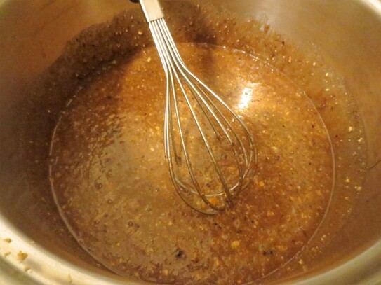 Când siropul este gata, se adaugă untul tăiat în bucăţi şi se amestecă uşor până ce se topeşte.