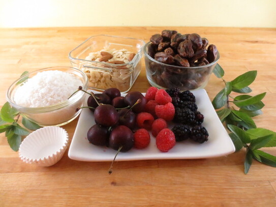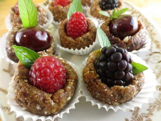 Aceste mini tarte cu fructe sunt printre cele mai simple şi delicioase prăjiturele fără coacere şi fără zahăr. Fructoza conţinută în curmale este suficientă pentru a satisface gustul de dulce, eliminând asftel nevoia de a adăuga zahăr. Este un dulce sănătos, bogat în fibre, vitamine şi minerale şi conţine doar fructe, nucă şi sâmburi.