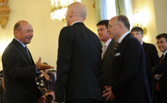 Preşedintele Traian Băsescu i-a primit miercuri pe ministrul francez de interne, Manuel Valls, şi pe ministrul delegat pentru afaceri europene, Bernard Cazeneuve, care au afirmat că au venit în România într-o misiune special încredinţată de preşedintele Francois Hollande.