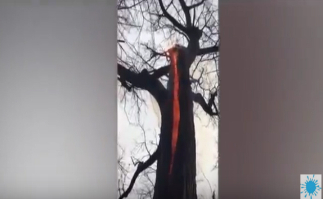 Un grup de excursionişti care vizitau pădurea Defiance, situată la aproximativ 97 km în afara oraşului Toledo din Ohio, Statele Unite ale Americii, au filmat un videoclip în care un copac, situat pe malul unui râu, ardea din interior spre exterior.