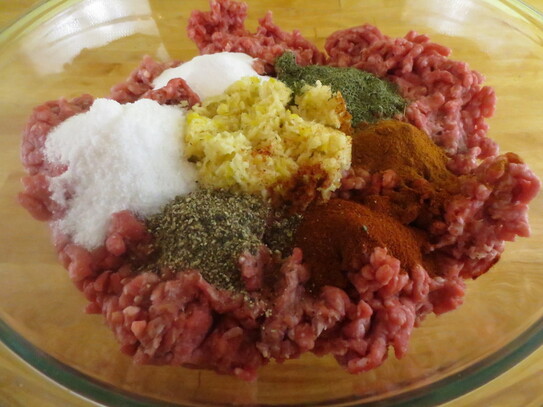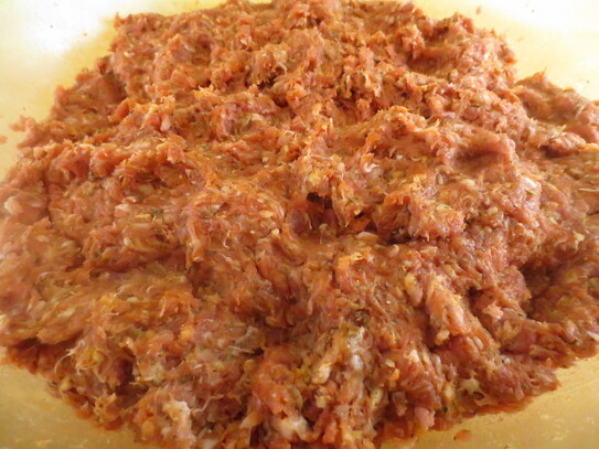După ce carnea tocată a stat o zi la macerat, se trece din nou prin maşina de tocat cu sita deasă de 3 mm. Se amestecă apoi cu supa de oase sau apă (în lipsa supei de oase) şi se adaugă piperul, cimbrul, mujdeiul strecurat, boia de ardei dulce şi iute şi mirodeniile.