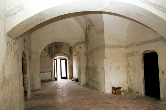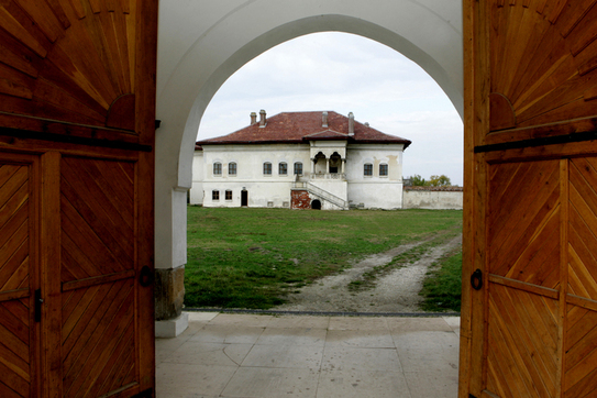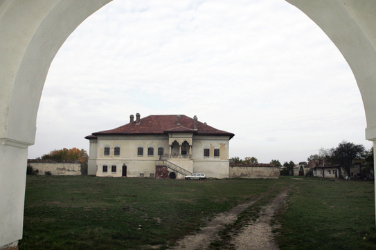 Palatul de mari dimensiuni se află în centrul acestei incinte, cu faţada principală spre heleşteul din fundul curţii.